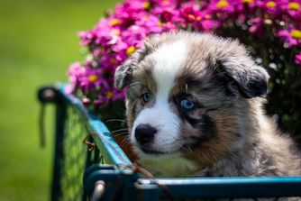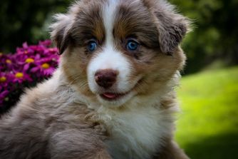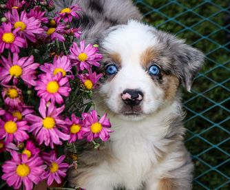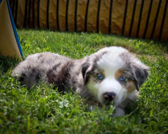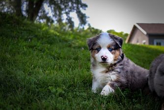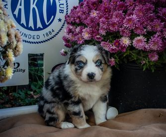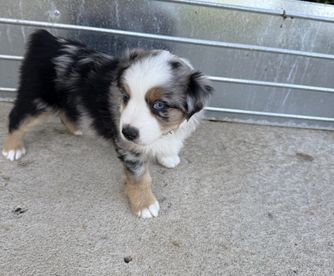 Our Miniature Australian Shepherd puppies are blue merle. Miniature American Shepherd puppies are blue merle. Colors will vary depending on the parent dogs.