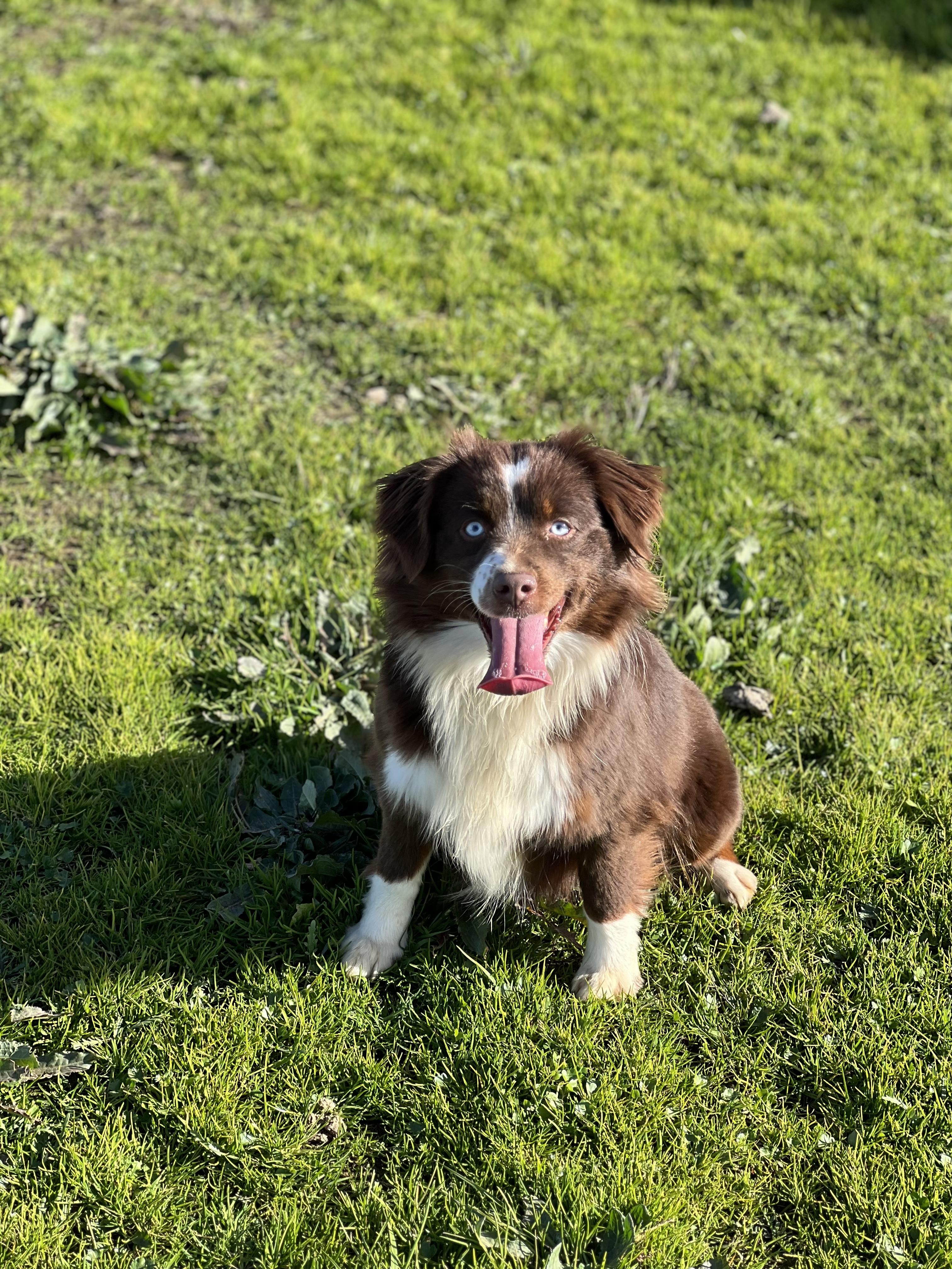 Bourbon is a female Miniature Australian Shepherd. Carefully selected as a great representative of her breed, Sarah decided to make her part of their program. Sarah has passed Good Dog’s screening process, which involved a review of their breeding practices, environment, and the mental and physical health of their dogs.