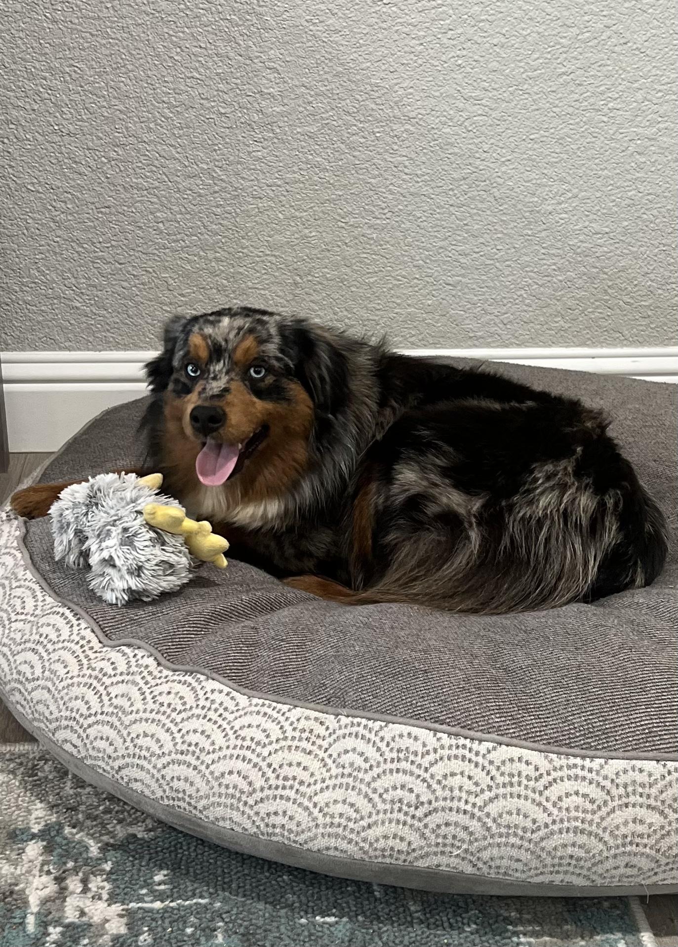 Hank is a male Toy Australian Shepherd. Carefully selected as a great representative of his breed, Sarah decided to make him part of their program. Sarah has passed Good Dog’s screening process, which involved a review of their breeding practices, environment, and the mental and physical health of their dogs.