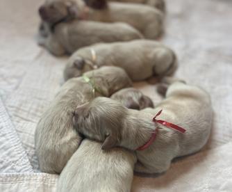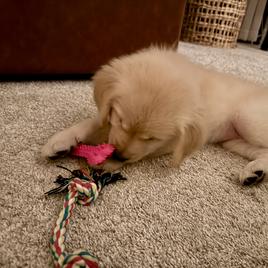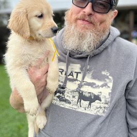 In my case, I was looking for a new family member and wanted a Golden Retriever. I found a recent litter from her pair of Lennie and Zadie. The combination of the two, the light color but boxy look of dad paired with the very traditional looking mom makes beautiful puppies! I have to say our family took secret votes on who was the right one from the litter and everyone struggled to decide because they were all great options.