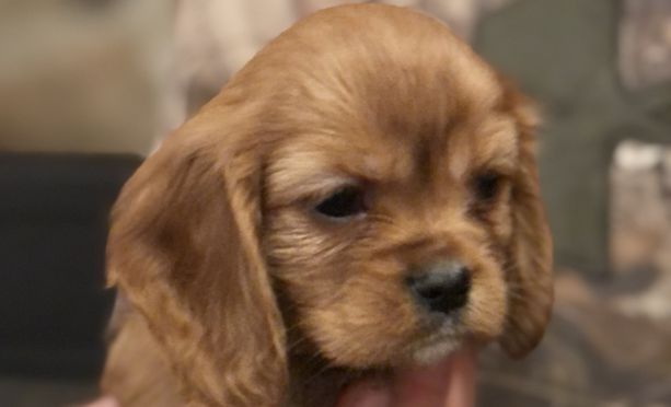 Rose is a petite and very sweet Ruby Cavie. Rose is a house dog and loves to snuggle and sit on my lap. She is playful and fun with her puppies and is an excellent Mom. She is AKC registered and has all OFA health Certs required for Cavies.