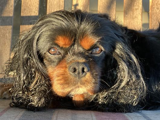 Hazel is very sweet and attentive Blenheim Cavalier that Loves being with people and other animals.
