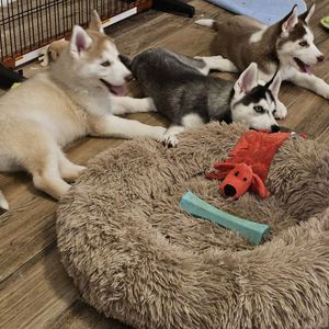 My husband and I had been researching puppies for some time when we came across photos of Bailey Zimmerman (now named Everest). We knew right away that he was the one for us. We couldn’t be happier with our adorable husky puppy! He has a wonderful personality, is smart, and is incredibly sweet. We feel so lucky to have him! Ashley and Michael made this experience easy and stress-free. Ashley answered all of my questions and sent photo updates, which I really appreciated. Michael even drove Everest to California, which was incredibly helpful. They provided an informative packet with tips for caring for huskies, along with important documents and a bag containing toys, food, a blanket, pee pads, and more. We couldn't have asked for a better experience!