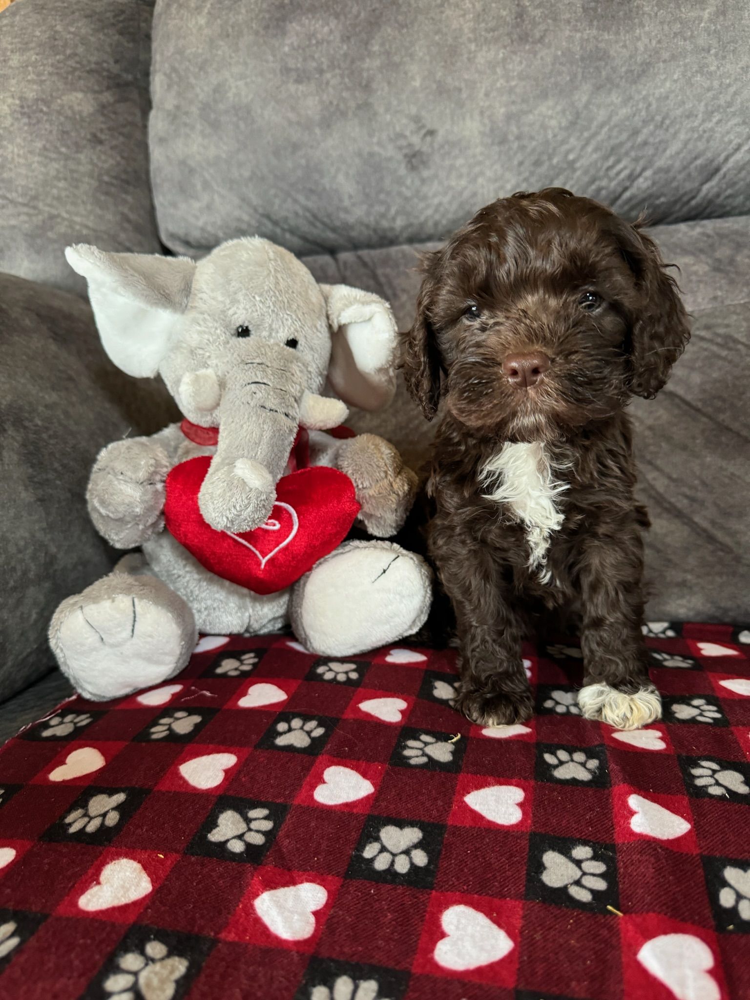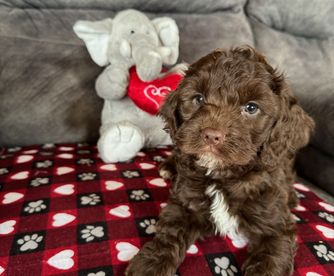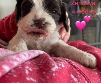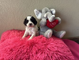 Cockapoo puppies include brown and white, brown, buff, and buff and white. Colors will vary depending on the parent dogs.
