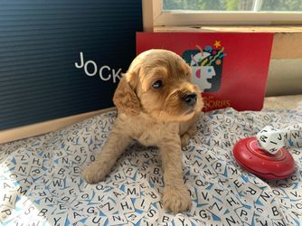 Cockapoo puppies are mini size. Sizes will vary depending on the parent dogs.