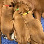 Our puppies are golden rust. Colors will vary depending on the parent dogs.