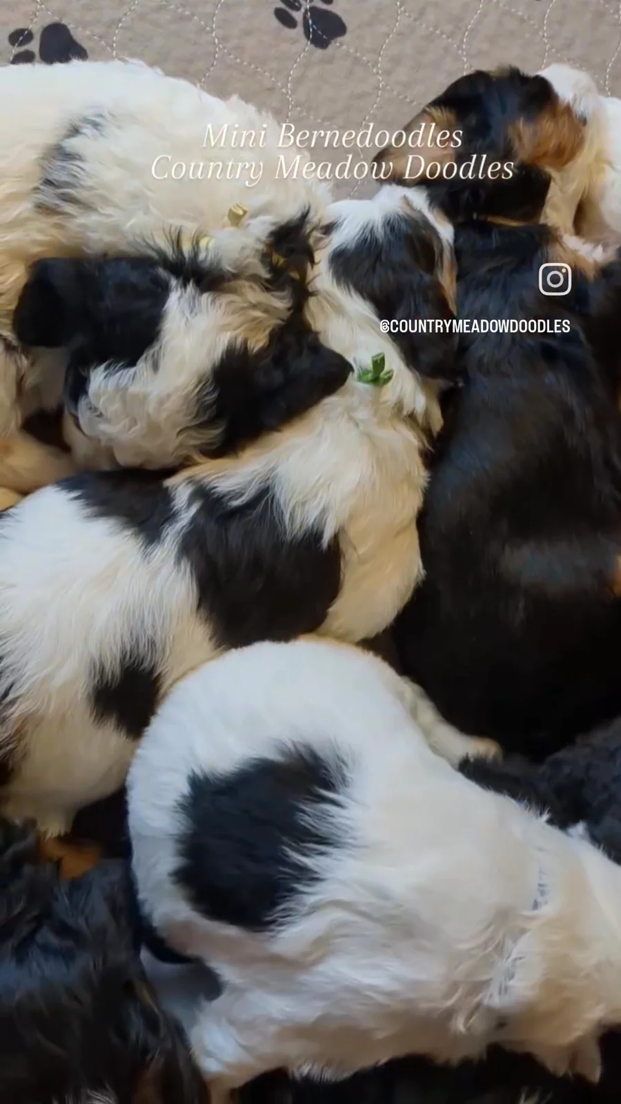 Check out this video of Dora's mini bernedoodles at 2 weeks old https://youtu.be/LkBVDuC_HoM?feature=shared