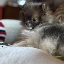 Well I had a blue Pom growing up but he passed in a tragic accident in 2006. My Husband got me our Stud Buddy in 2022 as a wedding gift he always said he would get me another one. Then without even considering a female I found one with my grandmas name but the breeder already sold her so she showed me another puppy and I fell in love... That is how we got Avery! The rest is history!