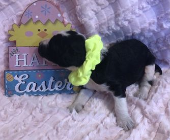 Our Aussiedoodle puppies include red merle and black and white. Poodle puppies include black, blue, cream, parti, and phantom. Goldendoodle puppies include cream, apricot, and black. Colors will vary depending on the parent dogs.