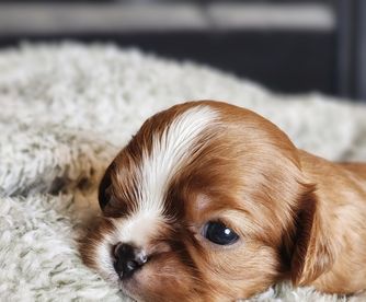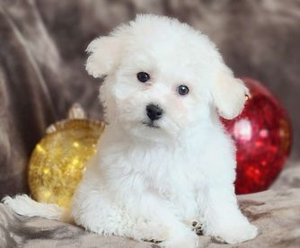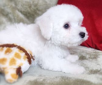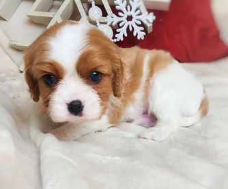 Our Bichon Frise puppies include white and cream, white and buff, and white. Cavachon puppies include apricot, ruby, blenheim, and apricot and white. Cavalier King Charles Spaniel puppies include blenheim, ruby, tri-color, black and tan, and chocolate. Colors will vary depending on the parent dogs.