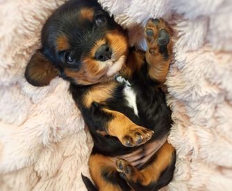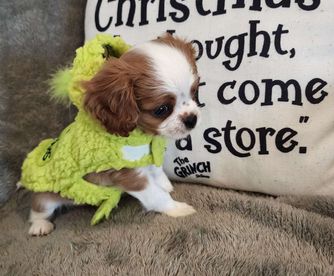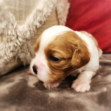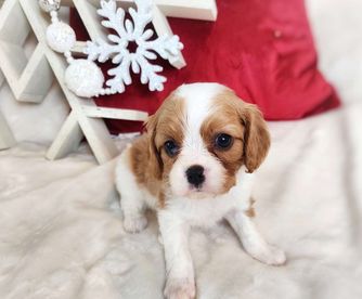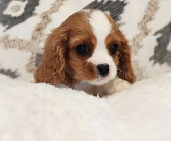 Emily is the Bomb Diggity. In other words, this was the best experience I've had purchasing a dog ever. my wife and I have been without a dog for about 4 years since my daughter moved out with the dog I got for her. The experience from start to finish was effortless. I saw the perfect puppy and inquired about him and when Emily said he was available I immediately put a deposit on him. We have been looking at this breed for over a year and trying to find the perfect face and coloring we were looking for. Nicholas, Now Georgie was the perfect pick. Emily was a pleasure to work with and even face-timed us so we felt more connected and comfortable with the process. Georgie is doing so well and already doing great on the potty training. No accidents since he arrived. He is already getting a cute personality and very playful. we are spoiling our cute Cavachon and loving every minute. I never heard of a flight Nanny but this was the best I could hope for. A Person who also loves dogs, personally flew our little puppy to our local airport where we met her and she handed him off to us and she was off again on another flight. Best experience. I could tell after just one call to Emily, she was the right person for us to do business with. very nice lady and very knowledgeable about her breed and the entire process. You won't go wrong with this breeder. I know people as I'm in the people business and Emily is one you can trust, I assure you. Thank you Emily for all you do and appreciate your hardwork in making this happen for me and my wife.