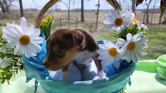 I really enjoyed working with Ellen! She was very good at communicating with us, and answered all of our questions. She would have been fine with us picking up Mia from her home but was nice enough to meet us, the day we got our baby fur girl! We love her already and fell in love with her along the way until she was ready to come home to us. Ellen was great at answering questions about Mias parents and even sending us a pic or two of them. I would highly suggest Country Rat Terriers!