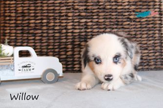 Our puppies include black, red merle, blue merle, red, black tri-color, and red tri-color. Colors will vary depending on the parent dogs.