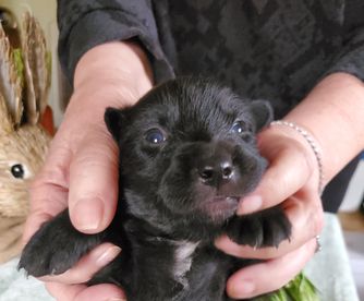 Cinder is very energetic and loves her snuggles. She took to being a mom like it was what she was born to do. She is very attentive to her pups and loves them to bits.