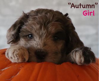 Our Aussiedoodle puppies include blue merle and black and white. Bernedoodle puppies include yellow and white, red, brown and white, black, and black and white. Goldendoodle puppies include cream, apricot, and parti. Colors will vary depending on the parent dogs.