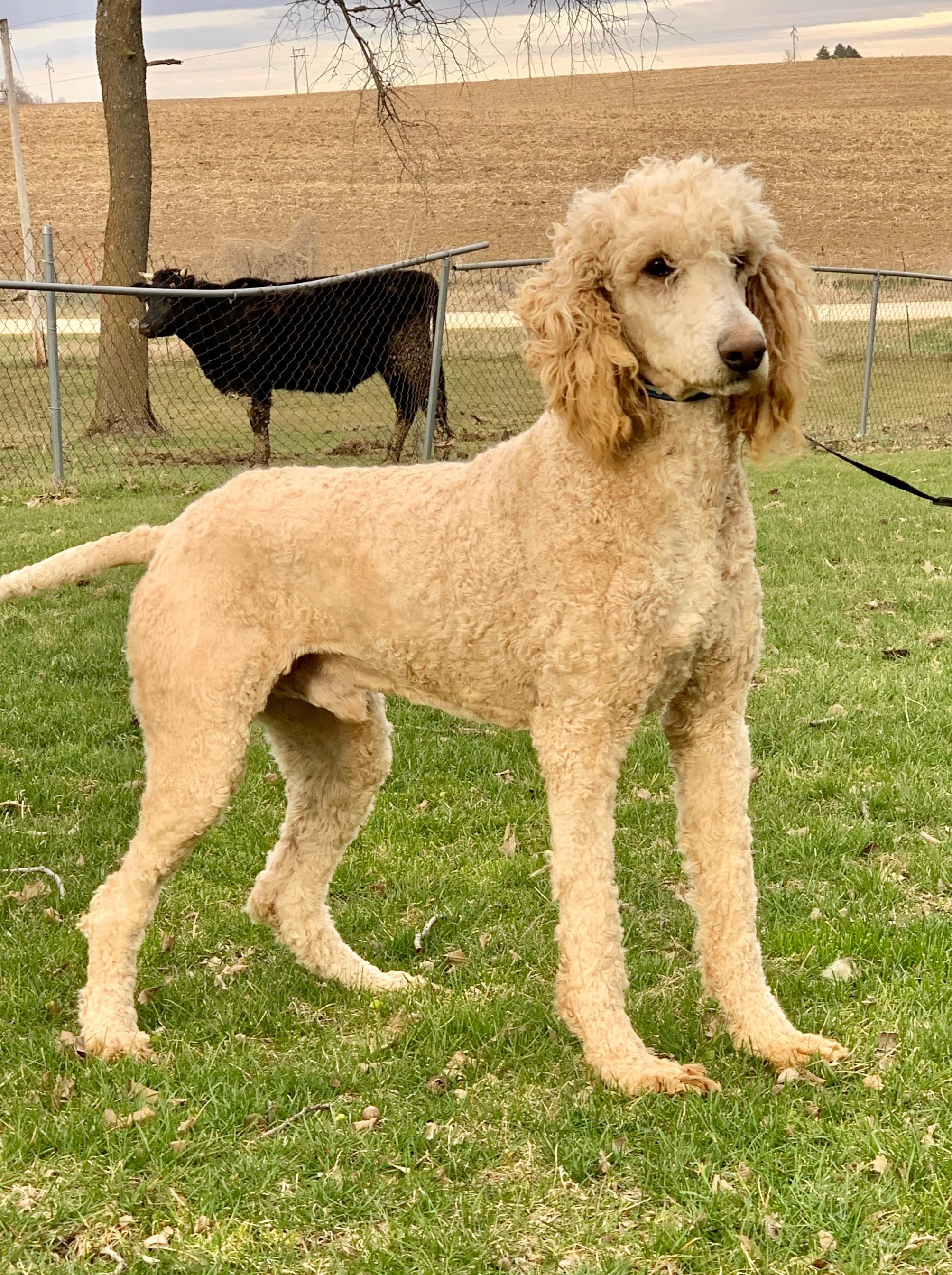 Jasper is a male Poodle. Carefully selected as a great representative of his breed, Courtney decided to make him part of their program. Courtney has passed Good Dog’s screening process, which involved a review of their breeding practices, environment, and the mental and physical health of their dogs.