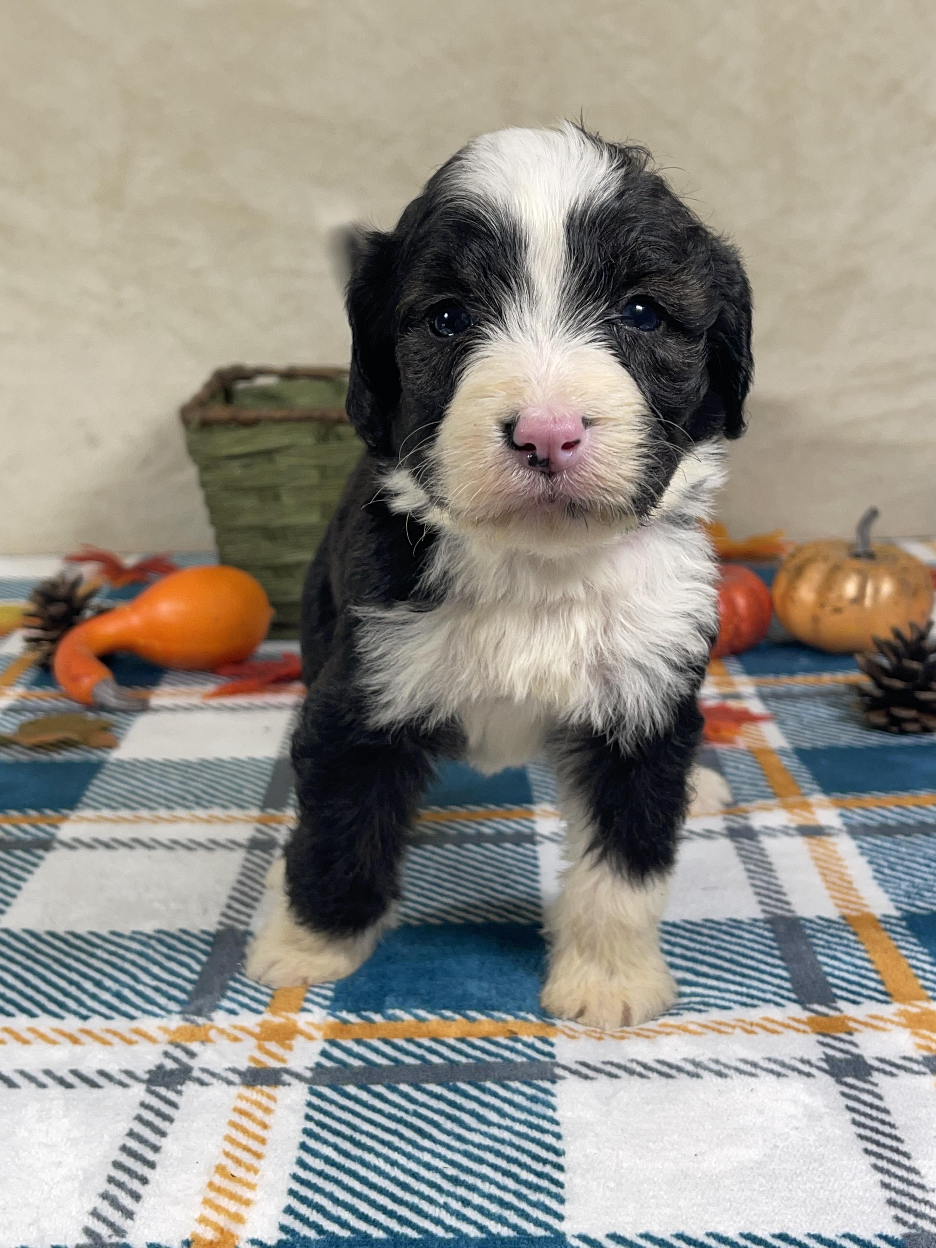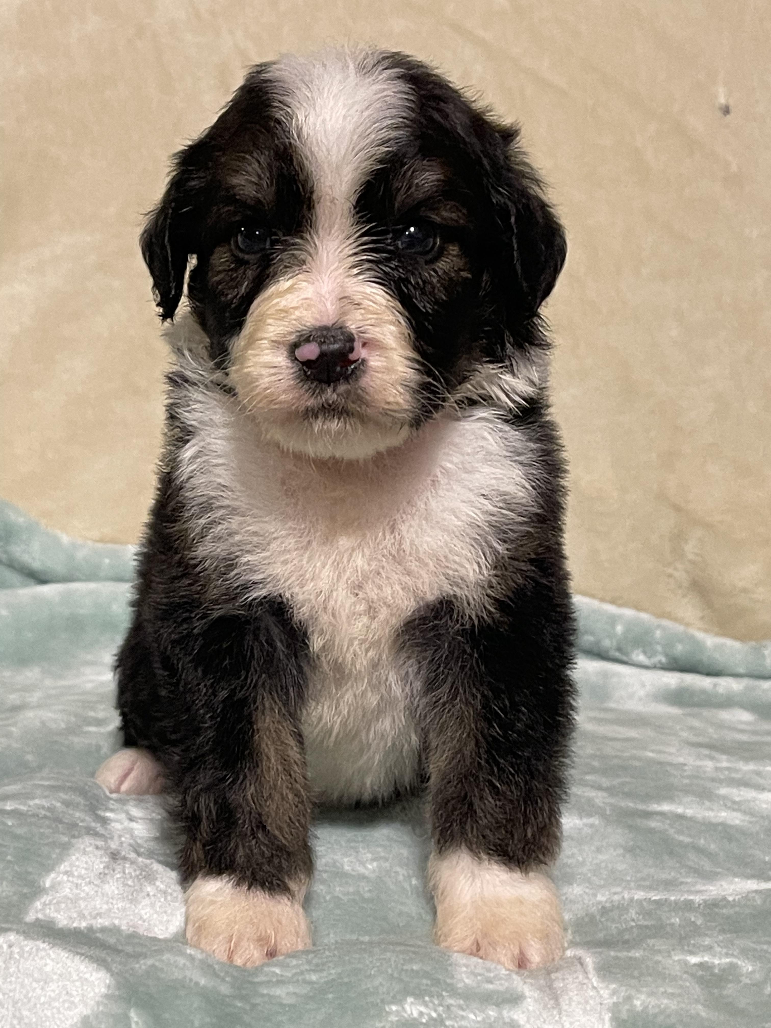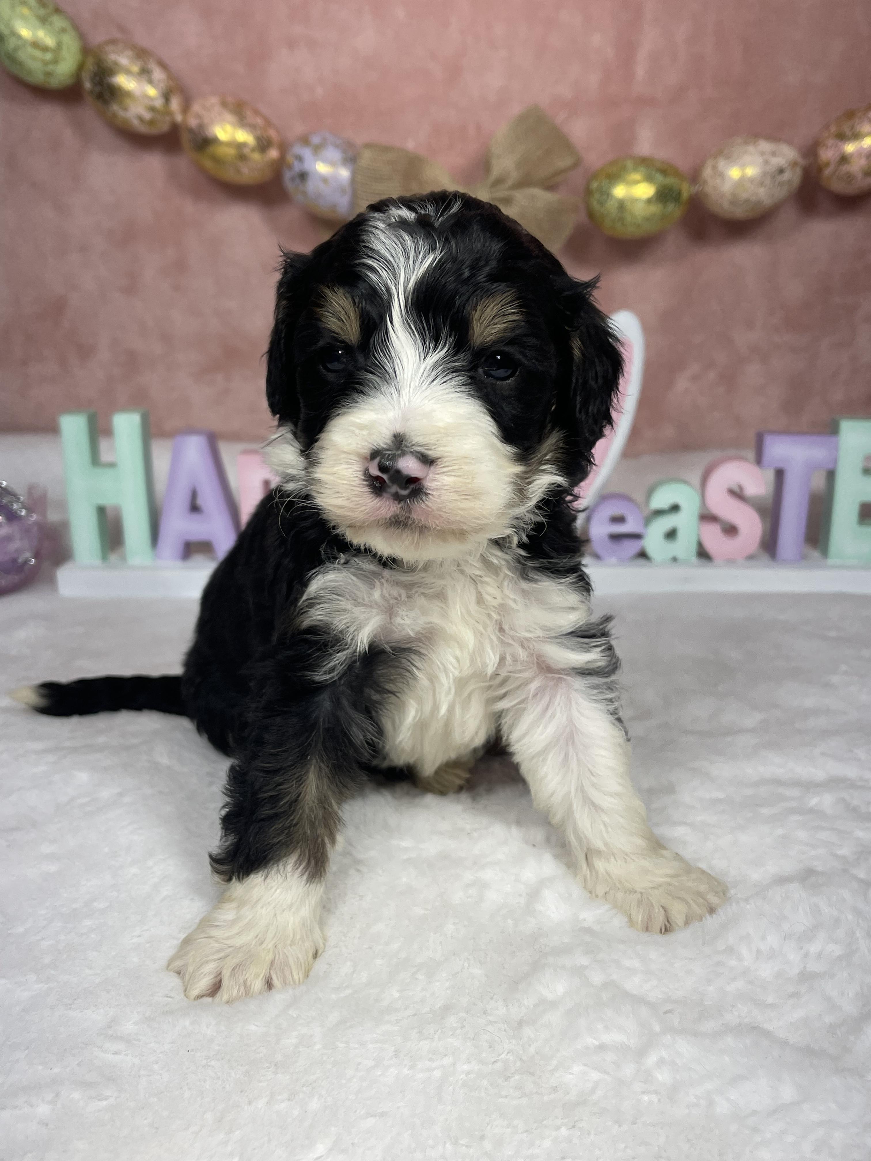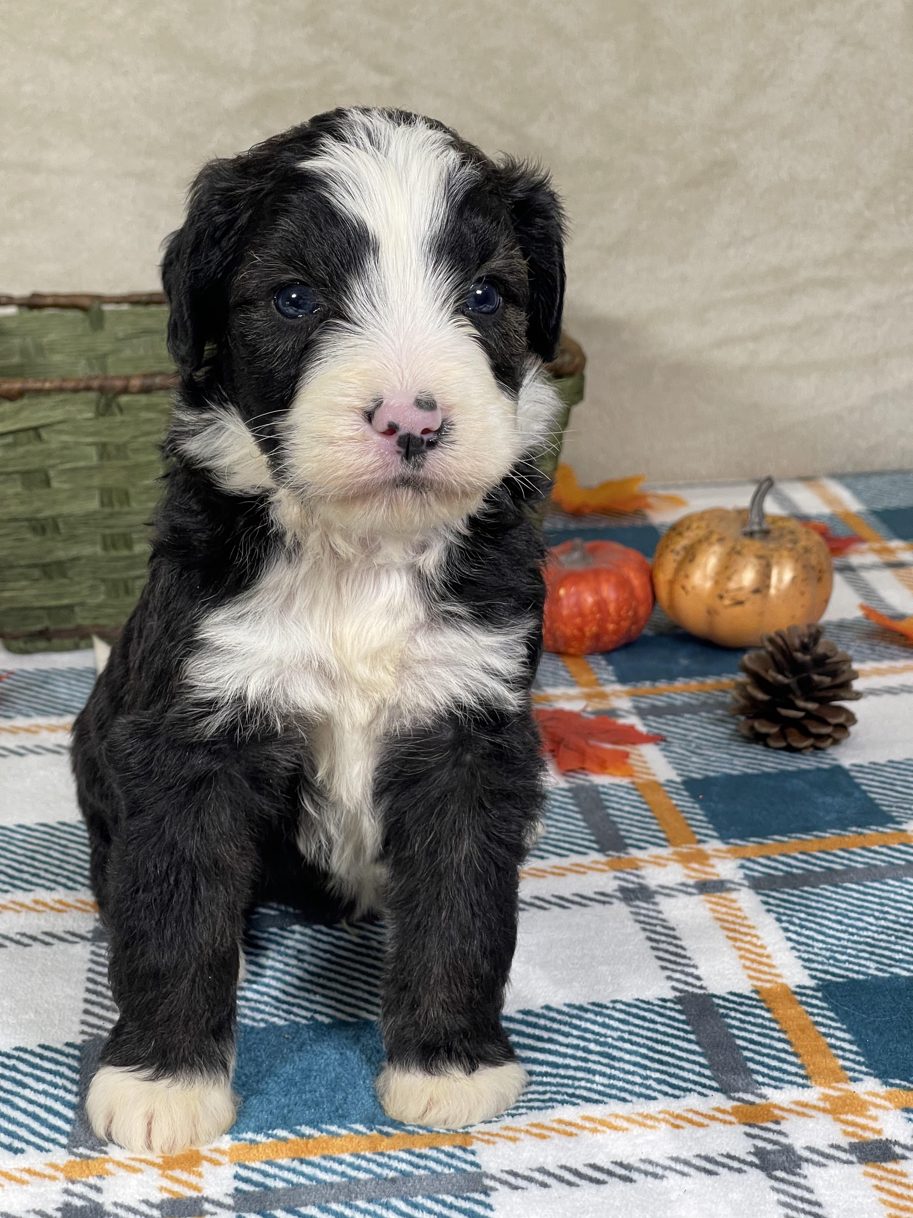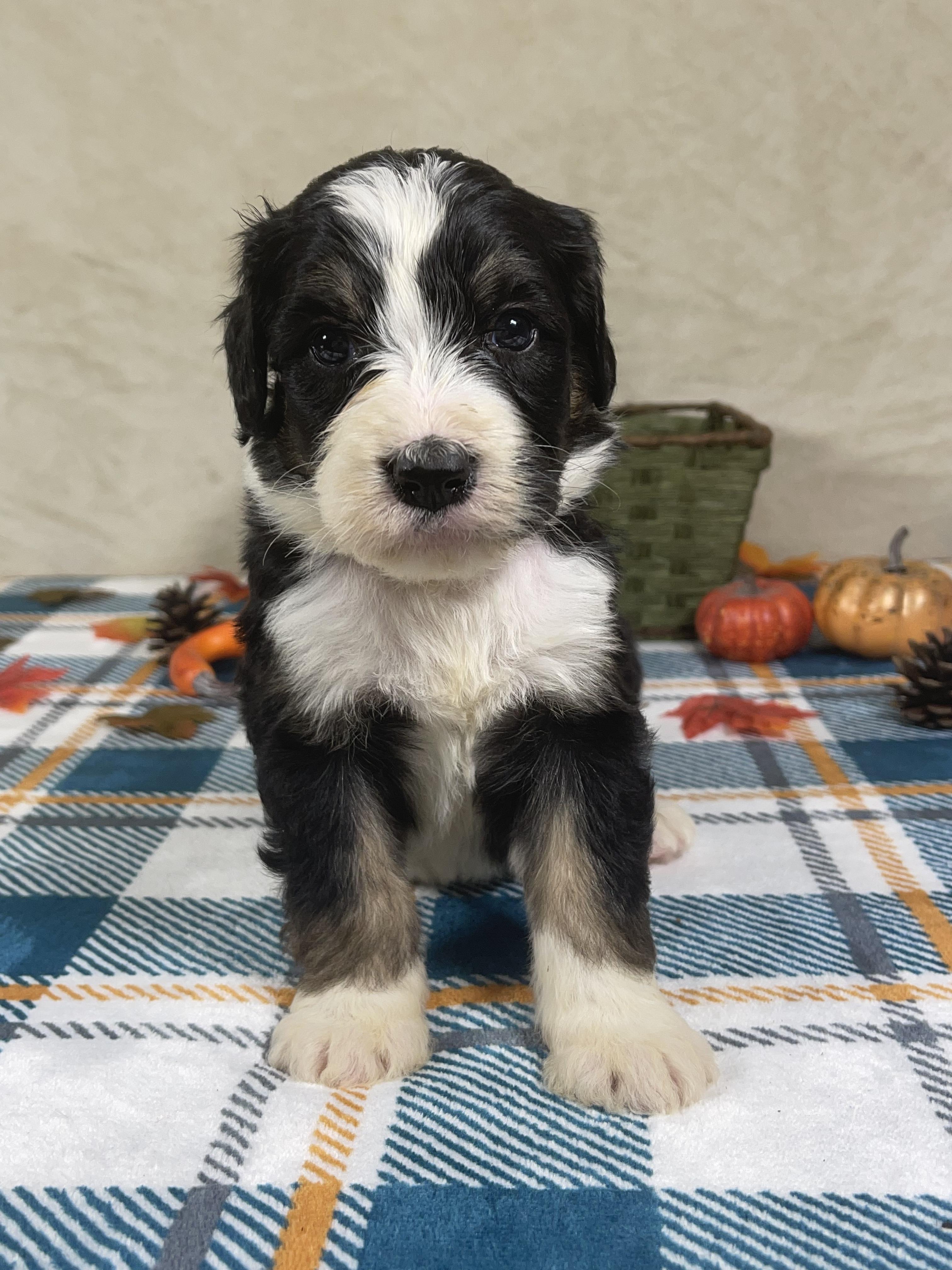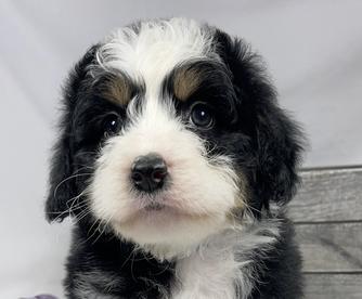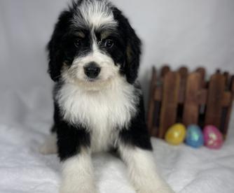 Goldendoodle puppies include cream, apricot, and red. Bernedoodle puppies include sable, black and white, tri-color, and phantom. Colors will vary depending on the parent dogs.
