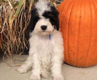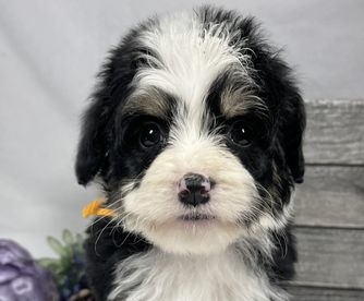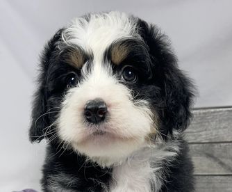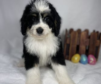 Bernedoodle puppies include sable, black and white, tri-color, and phantom. Goldendoodle puppies include cream, apricot, and red. Colors will vary depending on the parent dogs.