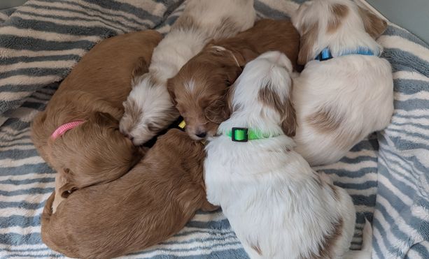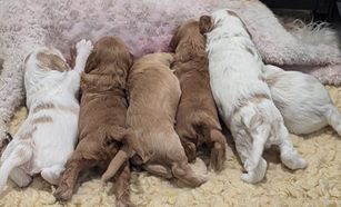 Our puppies include red and parti. Colors will vary depending on the parent dogs.