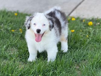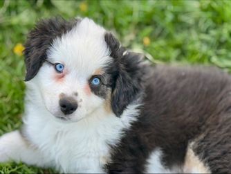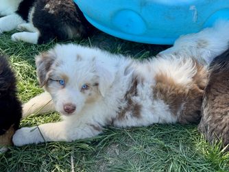 Our Australian Shepherd puppies include red merle, blue merle, black tri-color, and red tri-color. Miniature American Shepherd puppies include red tri-color, black tri, red merle, and blue merle. Colors will vary depending on the parent dogs.