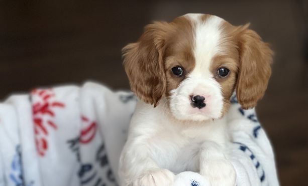 Our puppies are blenheim. Colors will vary depending on the parent dogs.