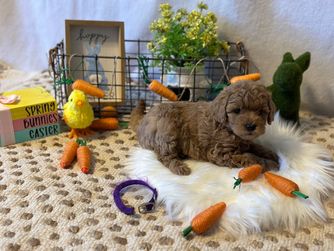 Puppy prices include a $250 non-refundable deposit and between $750 - $950 final payment, before taxes & fees.