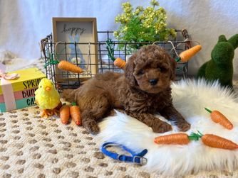 Our puppies are red. Colors will vary depending on the parent dogs.