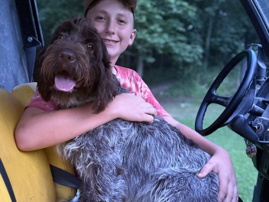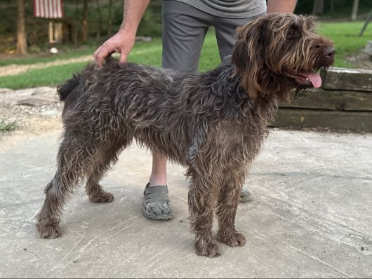 Mack is a male Wirehaired Pointing Griffon. Carefully selected as a great representative of his breed, Emily decided to make him part of their program. Emily has passed Good Dog’s screening process, which involved a review of their breeding practices, environment, and the mental and physical health of their dogs.