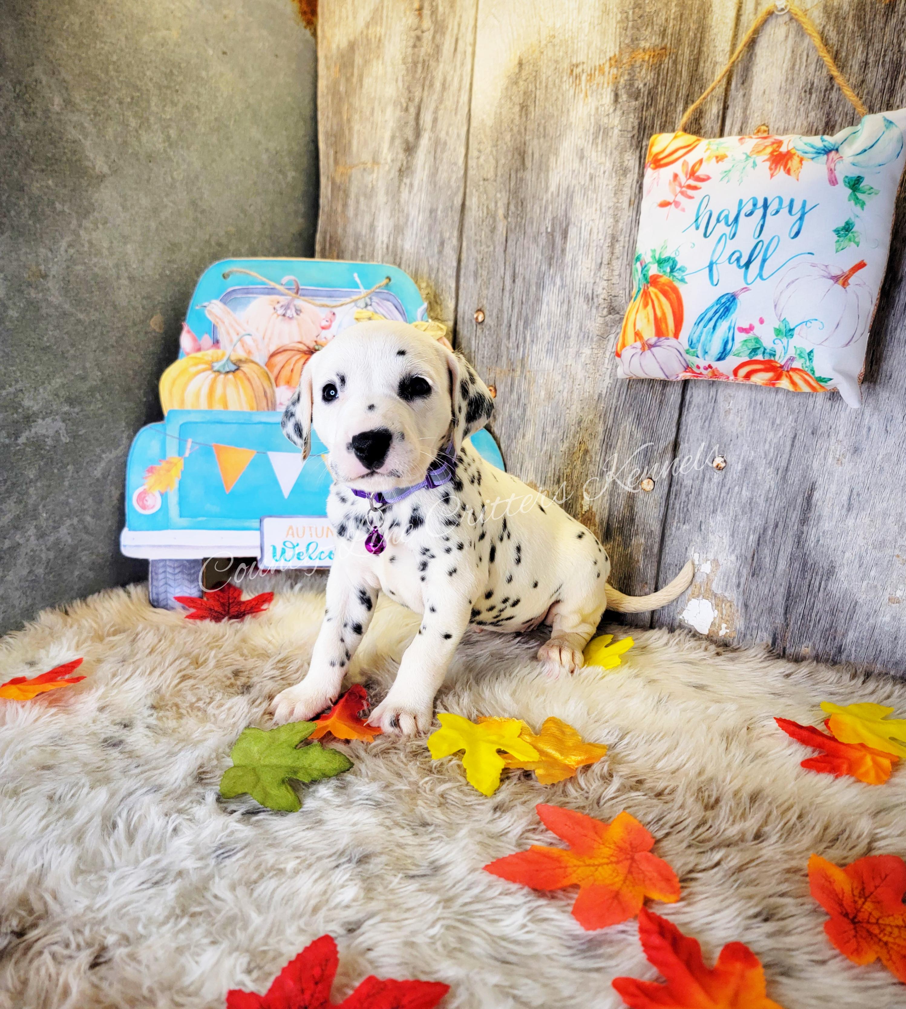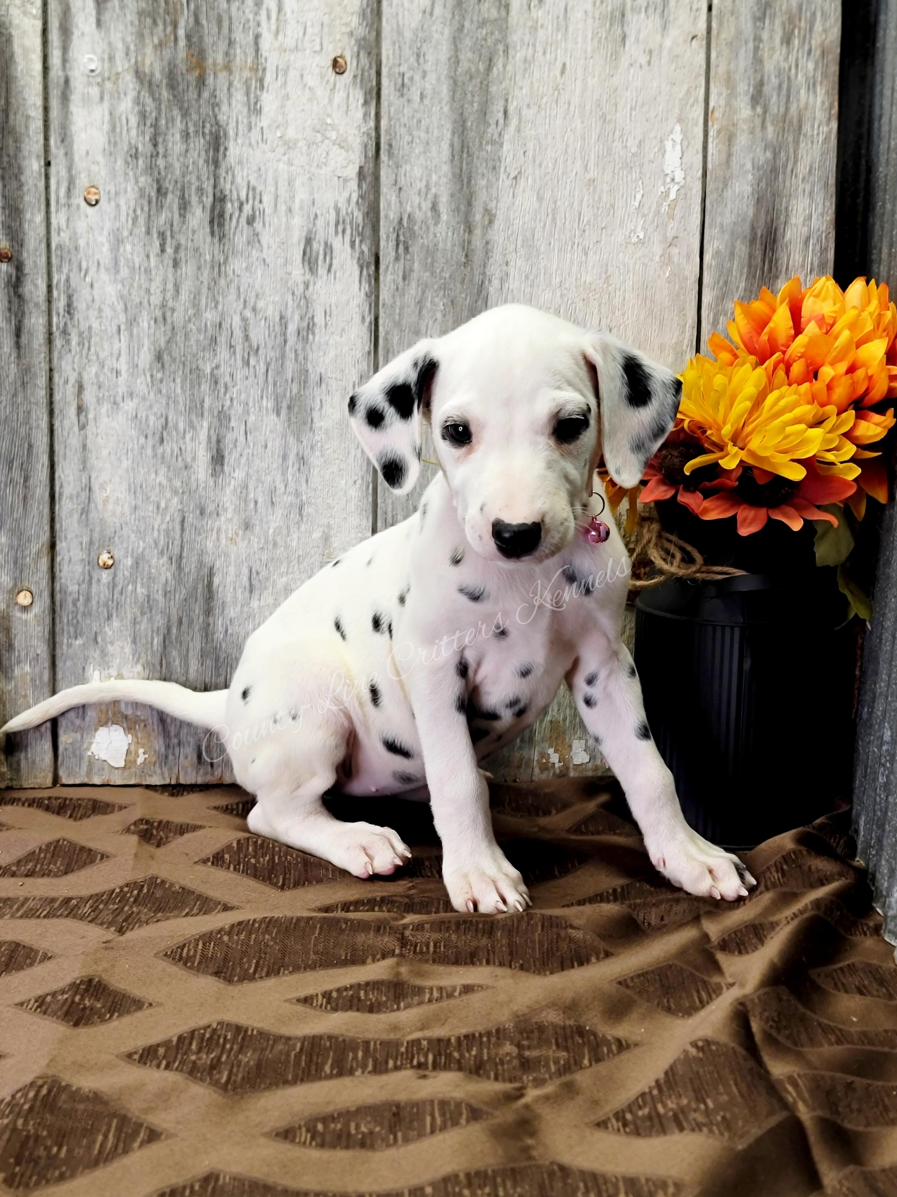 I'm Mechelle S., the breeder behind County-Line Critters located in Neosho, MO. We responsibly breed, raise, and socialize healthy puppies so others can enjoy the gift of living life with a Dalmatian! In order to produce the best quality puppies, we breed with a focus on health, temperament, and structure. We are passionate about this breed, and our love for these dogs shines through in every aspect of our breeding program.