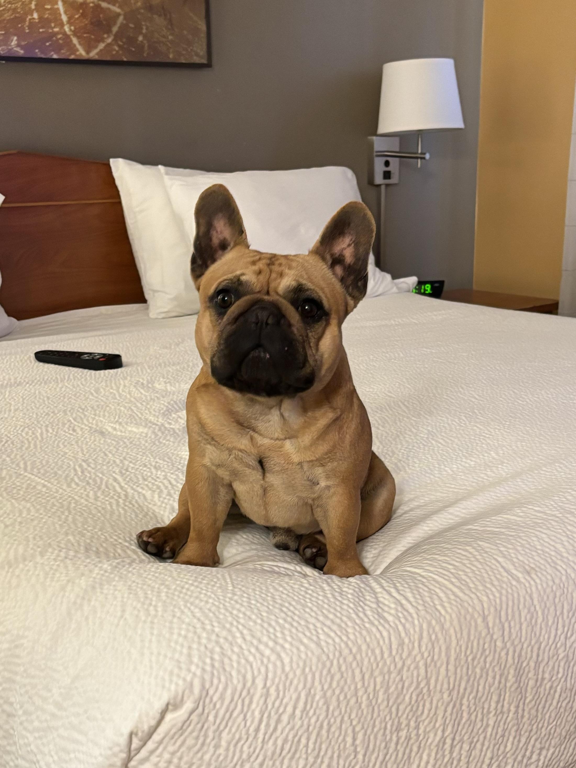 Johnny is a male French Bulldog. Carefully selected as a great representative of his breed, Caryn decided to make him part of their program. Caryn has passed Good Dog’s screening process, which involved a review of their breeding practices, environment, and the mental and physical health of their dogs.