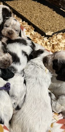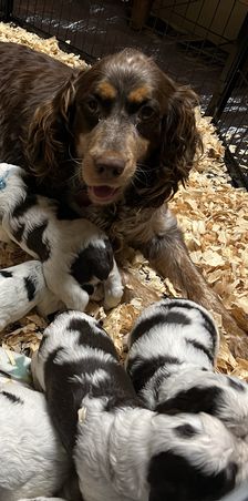 Our breeding program is special to us being that we hand raise our puppies inside of our home from birth—until they leave for their forever homes. They receive hands-on necessary socialization skills. Our sire and Dam are very special to us, ranging from their training to their appearance. Raised on almost 10 acres, our springers have a high drive to hunt/flush and enjoy the outdoors.