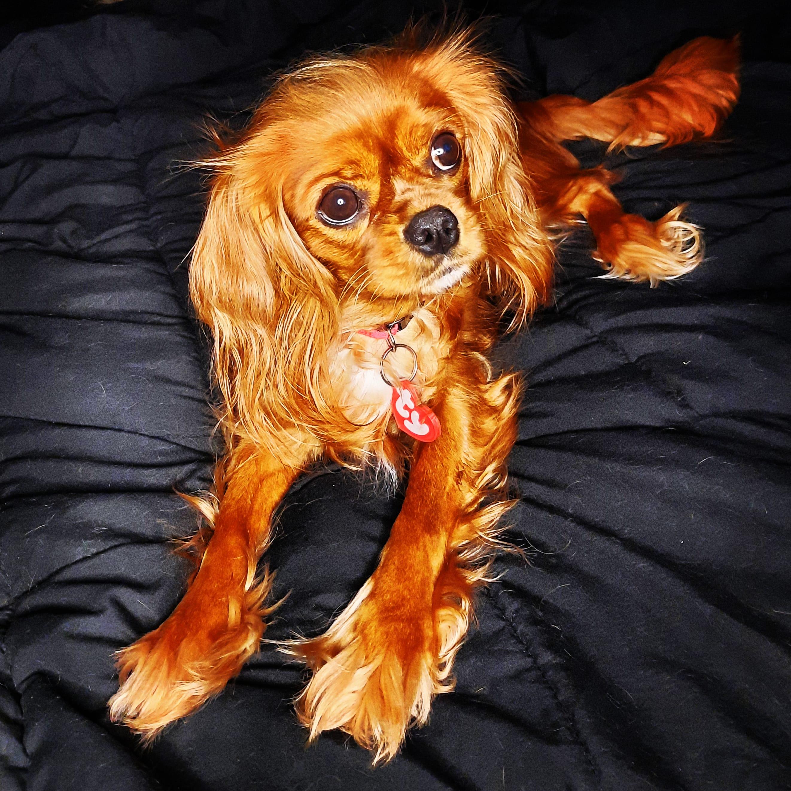 Tia is a female Cavalier King Charles Spaniel. Carefully selected as a great representative of her breed, JaLynn decided to make her part of their program. JaLynn has passed Good Dog’s screening process, which involved a review of their breeding practices, environment, and the mental and physical health of their dogs.