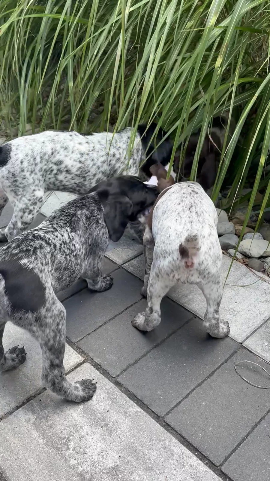 Goose is settling in great. He is precious. Wahiawa our other GSP has taken to him and they walk the yard a few times a day, terrorizing the chickens and scarring away all the 8 and 12 point deer. Brett thank you for raising a great little boy. Sincerely, Frank