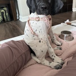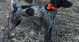 Minnie is a bold and intelligent German Shorthaired Pointer with a strong hunting background and a sweet, devoted nature at home. She has hunted across seven states, pursuing pheasant, quail, grouse, and woodcock with enthusiasm and precision. Minnie holds an Advanced Retrieving title and has multiple passes toward her AKC Junior Hunter title. In the field, she’s focused and determined; at home, she’s affectionate, gentle, and eager to please—making her a reliable hunting partner and a loving family companion.