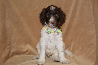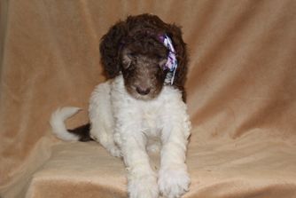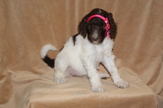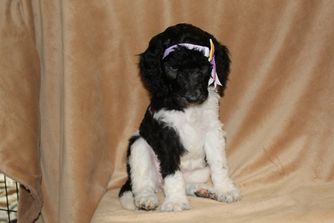 My husband and I adopted Belle, a parti-colored standard poodle, from Anita of Covington Acres. I visited the breeder twice before choosing our new 4 month old puppy. I chose Belle because she had a sweet trusting nature like her mother, whom we also met on the first visit.