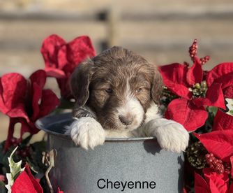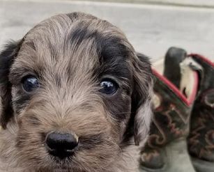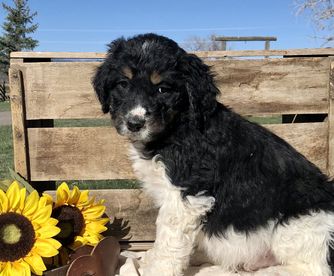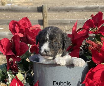 I'm Dusty H., the breeder behind Cow Town Doodles located in Lyman, WY. With the Australian Mountain Doodles you get the lovable snuggly fun loving personality of the Bernedoodle, the athleticism and intelligence of Aussiedoodle and the low to no shed and curls of the poodle!!
