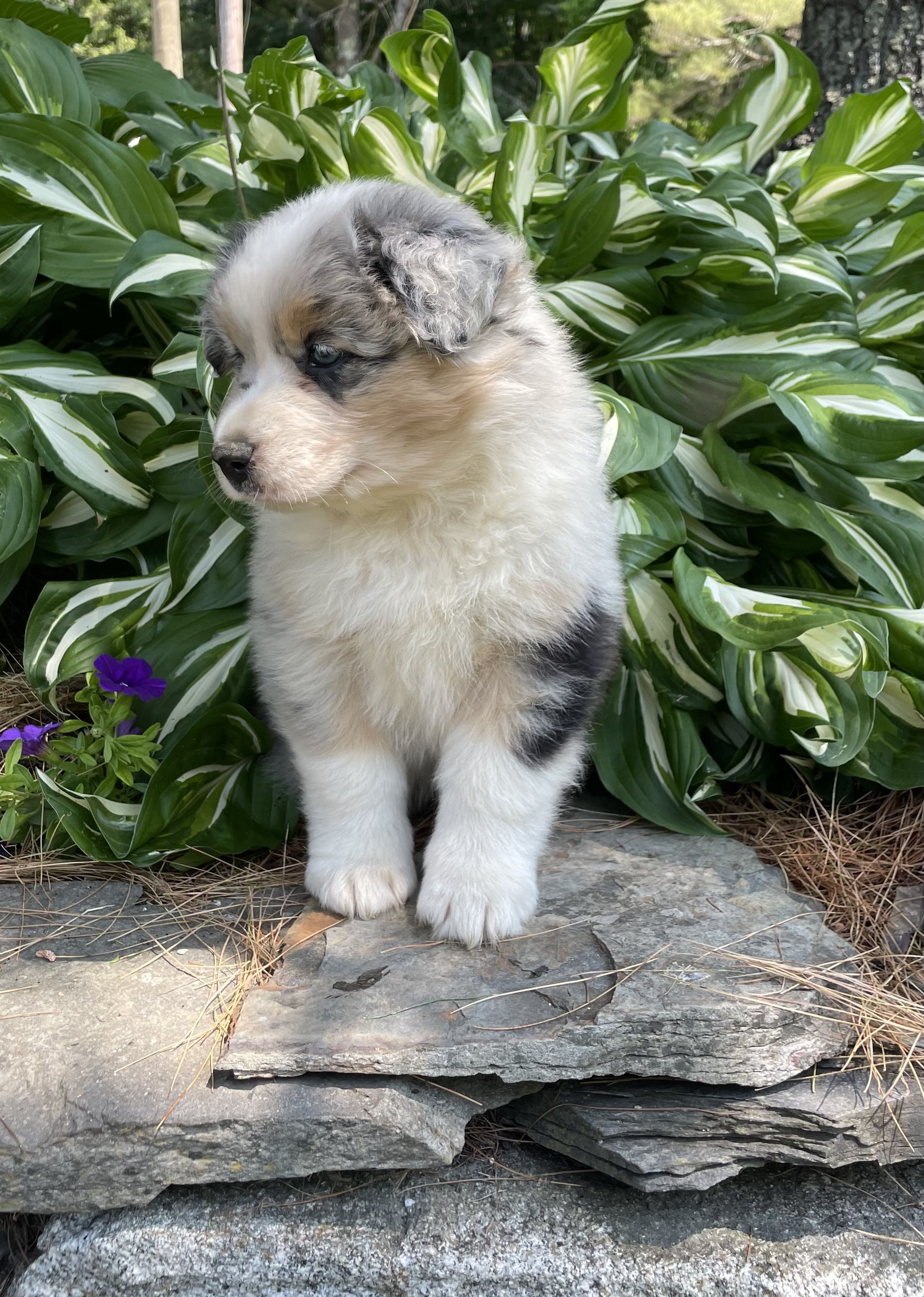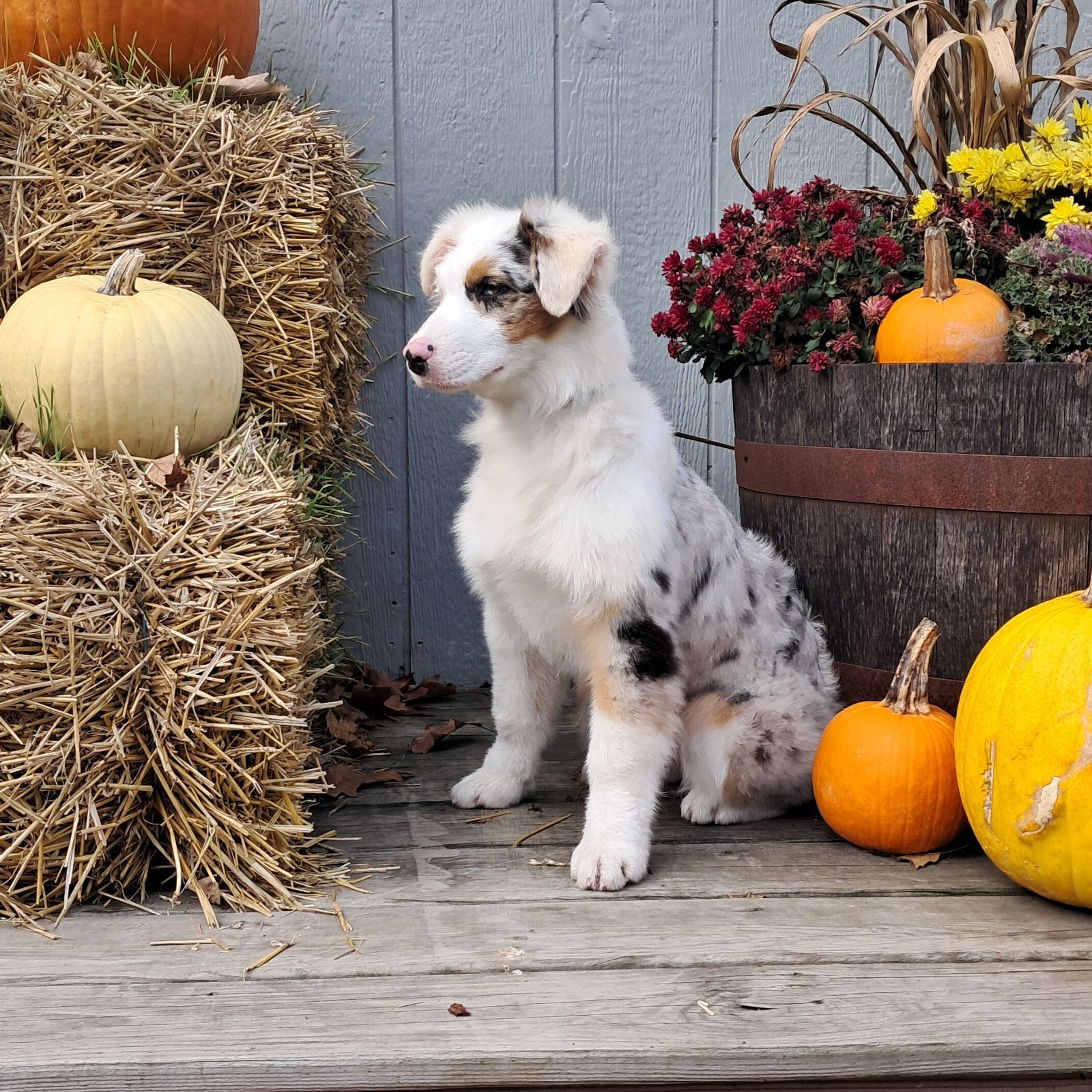 Our puppies include red merle, blue merle, black tri-color, and red tri-color. Colors will vary depending on the parent dogs.