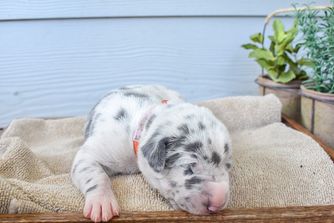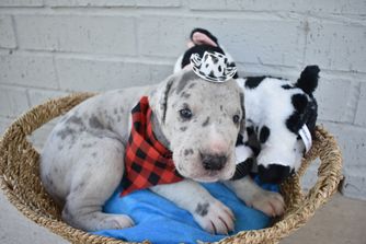 Our puppies include blue and white, blue, harlequin, and merle. Colors will vary depending on the parent dogs.
