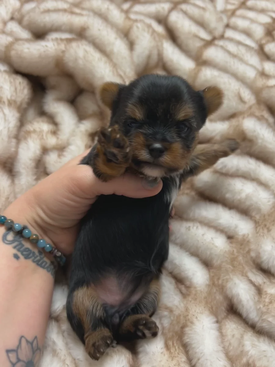 Emerald s a black and tan pure bred AKC Yorkshire terrier