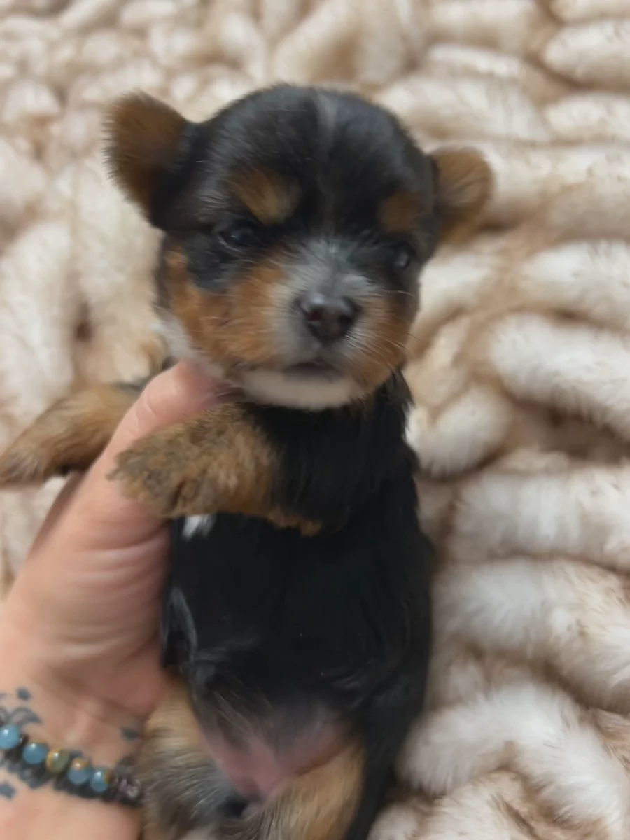 Female Chocolate and Tan, Parti-Color Yorkshire Terrier