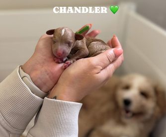 Mav is a male Goldendoodle. Carefully selected as a great representative of his breed, Jessica decided to make him part of their program. Jessica has passed Good Dog’s screening process, which involved a review of their breeding practices, environment, and the mental and physical health of their dogs.