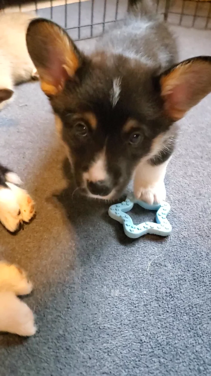 I have the Chip (Crinkle) puppy. Mikayla was a pleasure to communicate with. Any questions I had she promptly answered. Mikayla sent Chip (Crinkle) home with toys and all his vet records. She sent video’s and pictures to keep me updated. The description of Chip (Crinkle) was accurate. His disposition is excellent. It is obvious initial potty training was done. I felt like Mikayla was genuine and truly loves and adores her puppies. I have gotten other dogs from other breeders and I can say with certainty that Mikayla was my favorite. I am beyond thrilled to have a puppy from Cozy Hearth Cogis.
