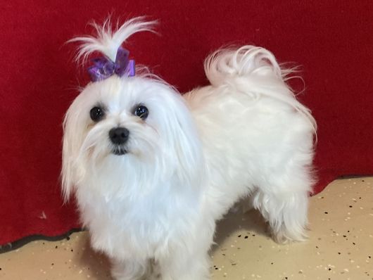 Spice is a female Maltese. Carefully selected as a great representative of her breed, Kathy decided to make her part of their program. Kathy has passed Good Dog’s screening process, which involved a review of their breeding practices, environment, and the mental and physical health of their dogs.