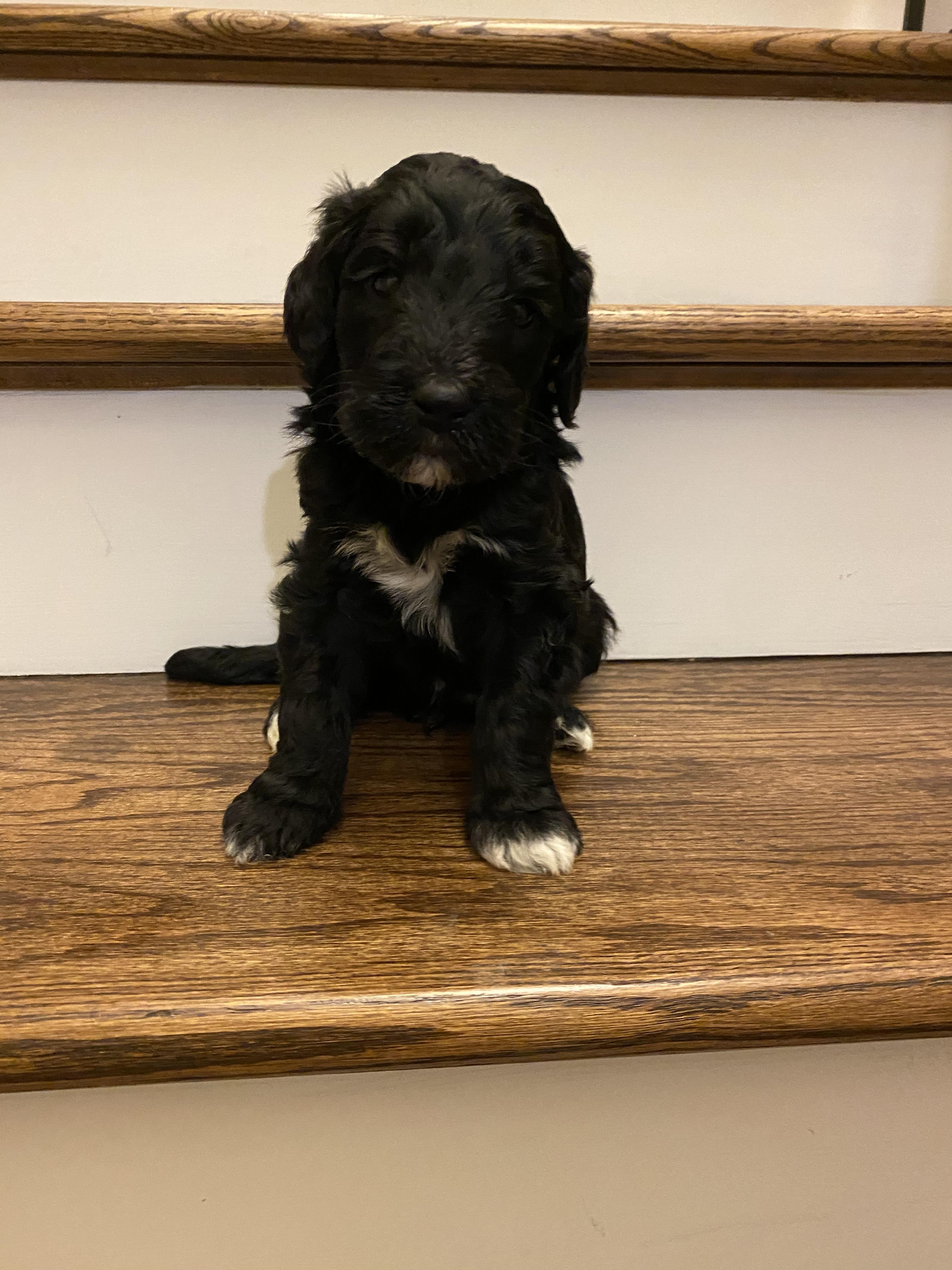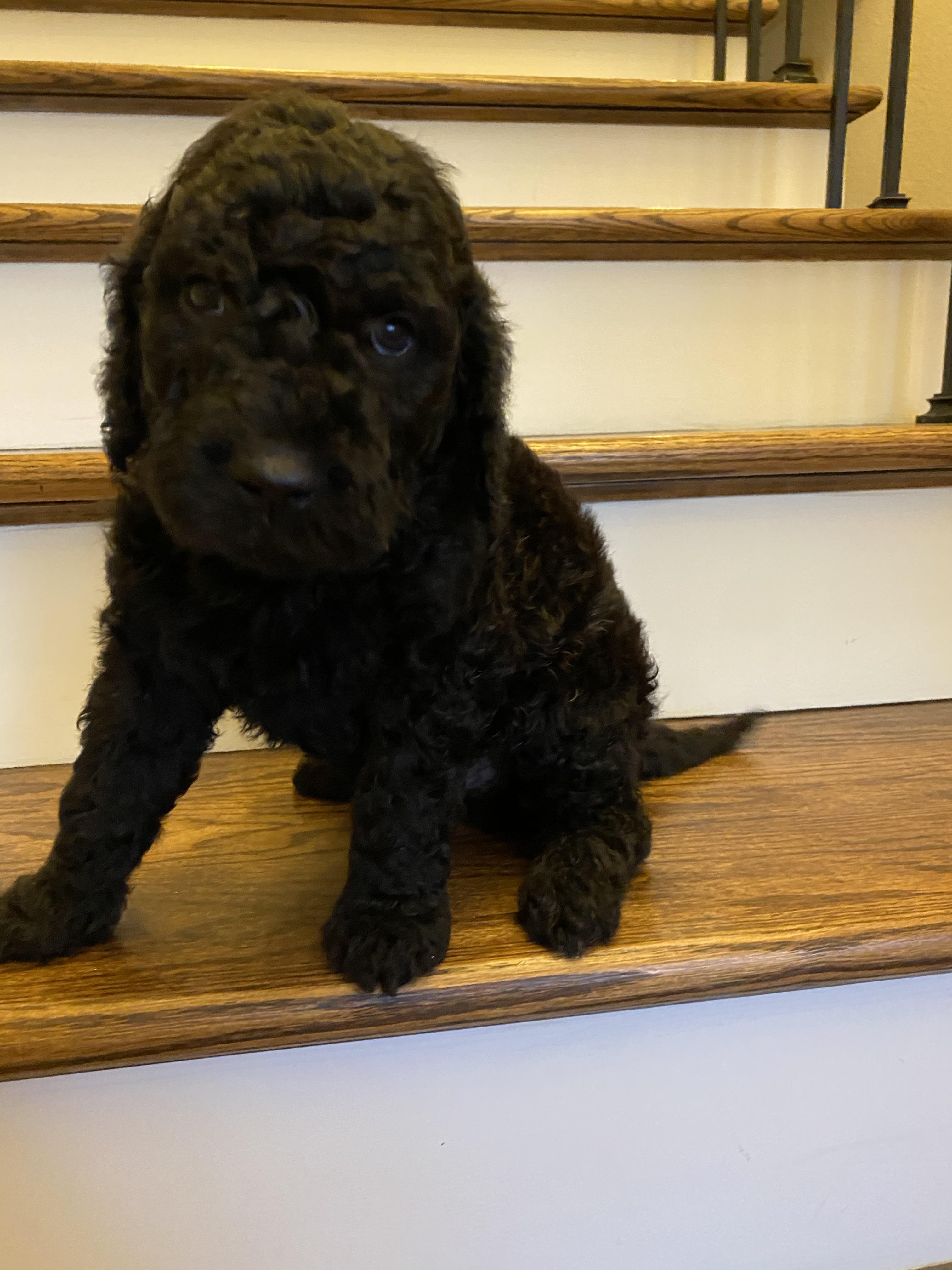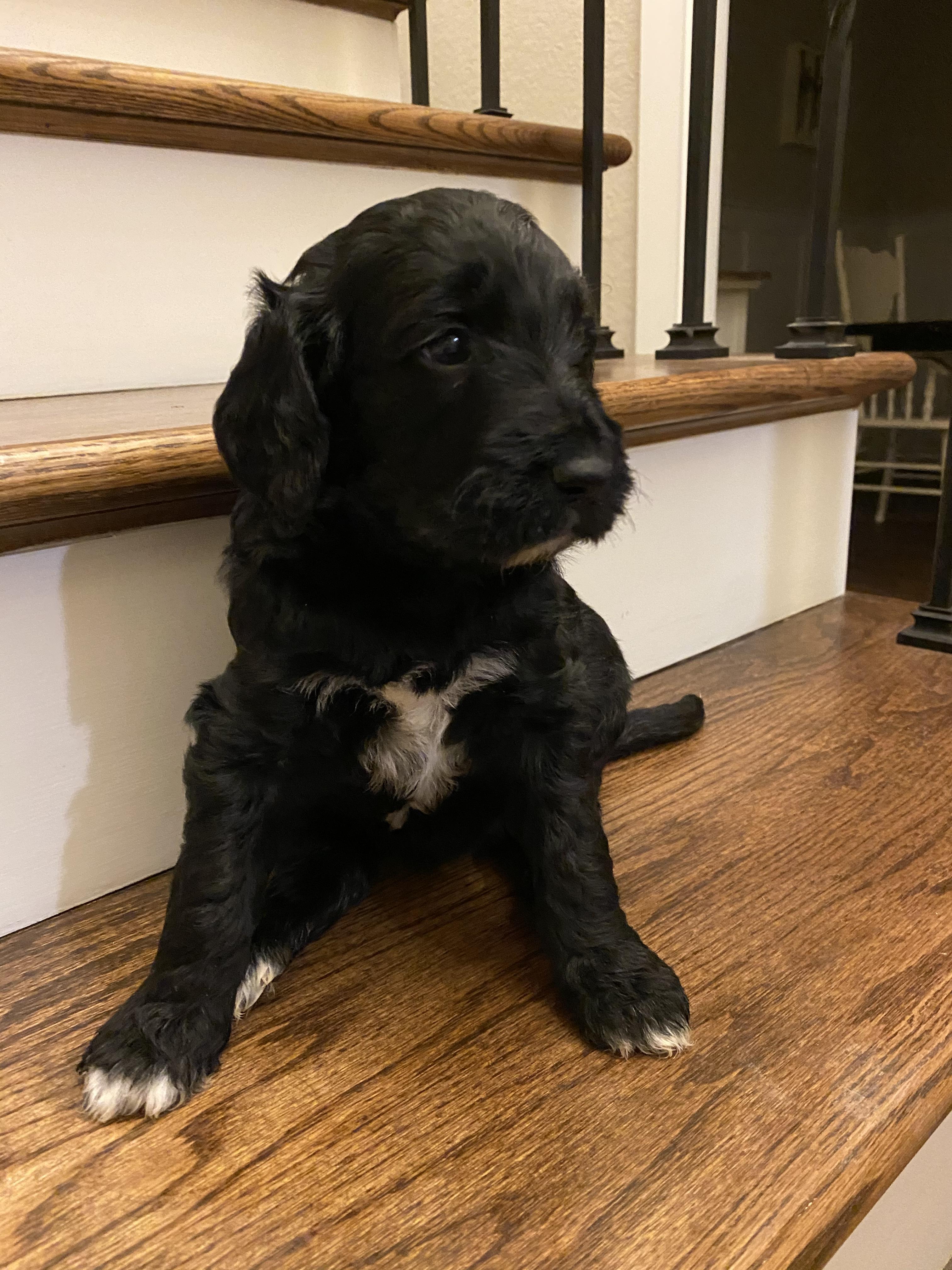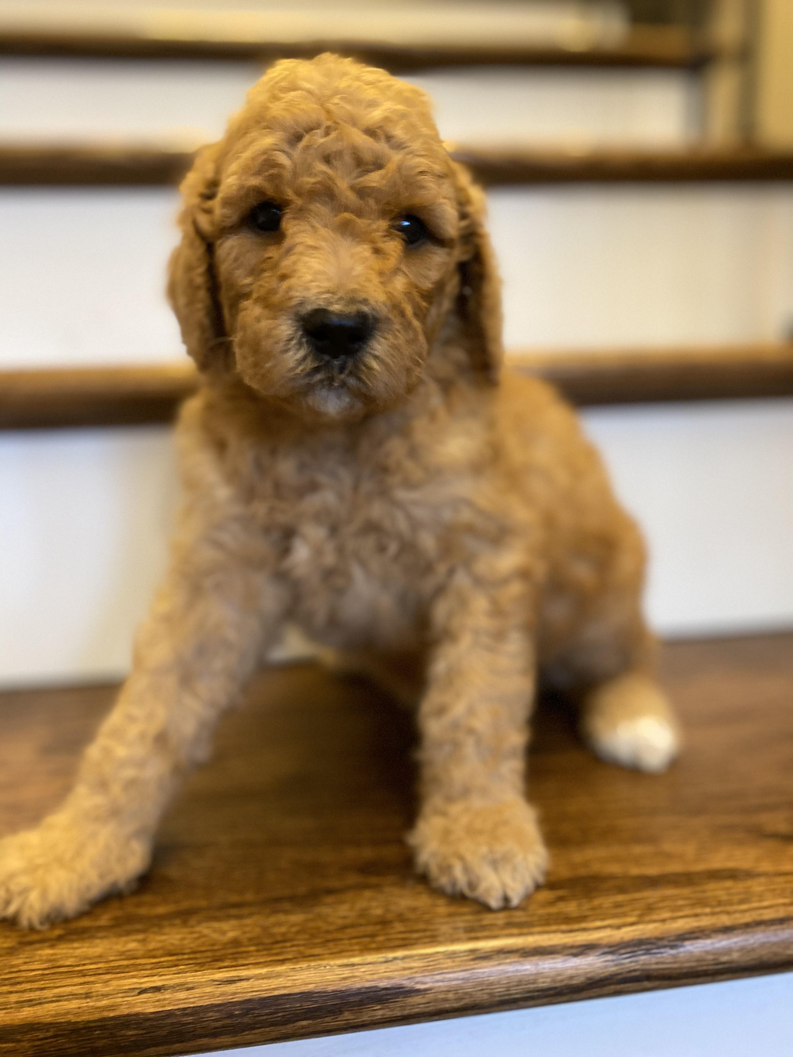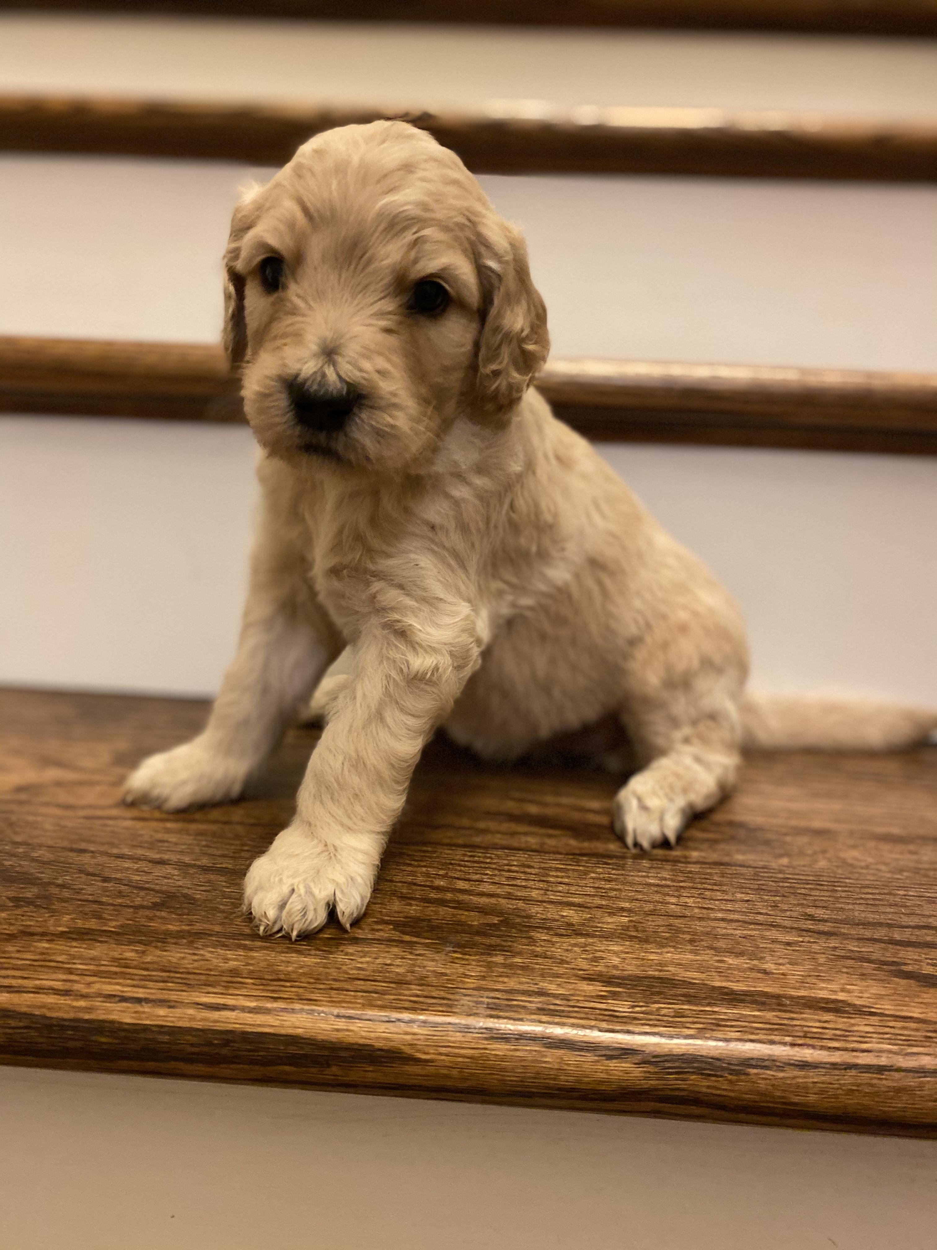 Our Goldendoodle puppies include cream, apricot, red, and black. Colors will vary depending on the parent dogs.
