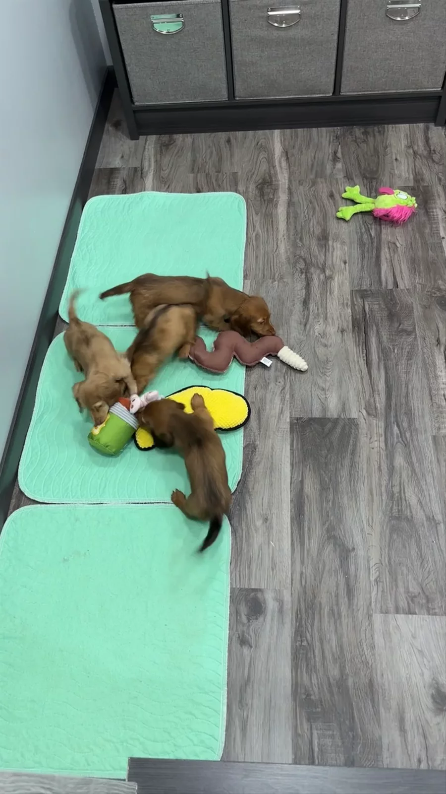 Izzy’s puppies are almost four weeks old. They’re enjoying lunch before their afternoon nap ☺️