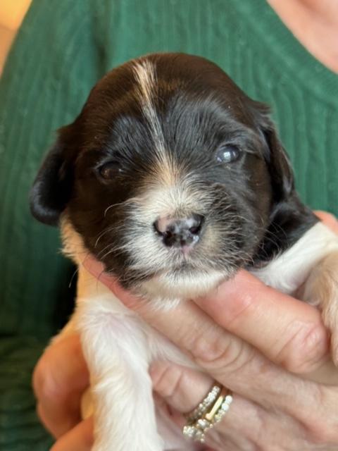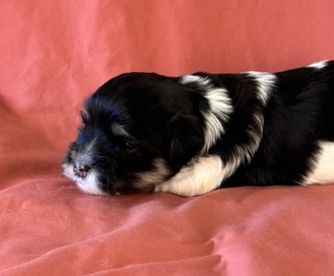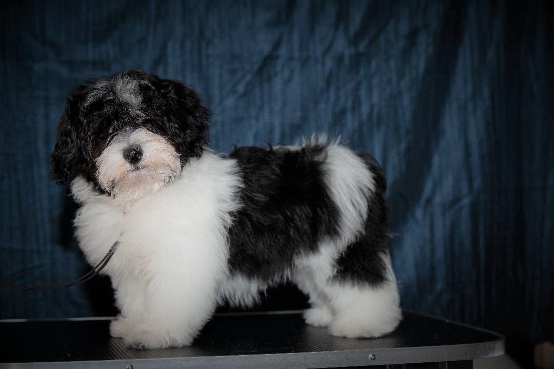 Lovely, correct black and white Havanese. Easily finished her championship and grand championship. Great family member.