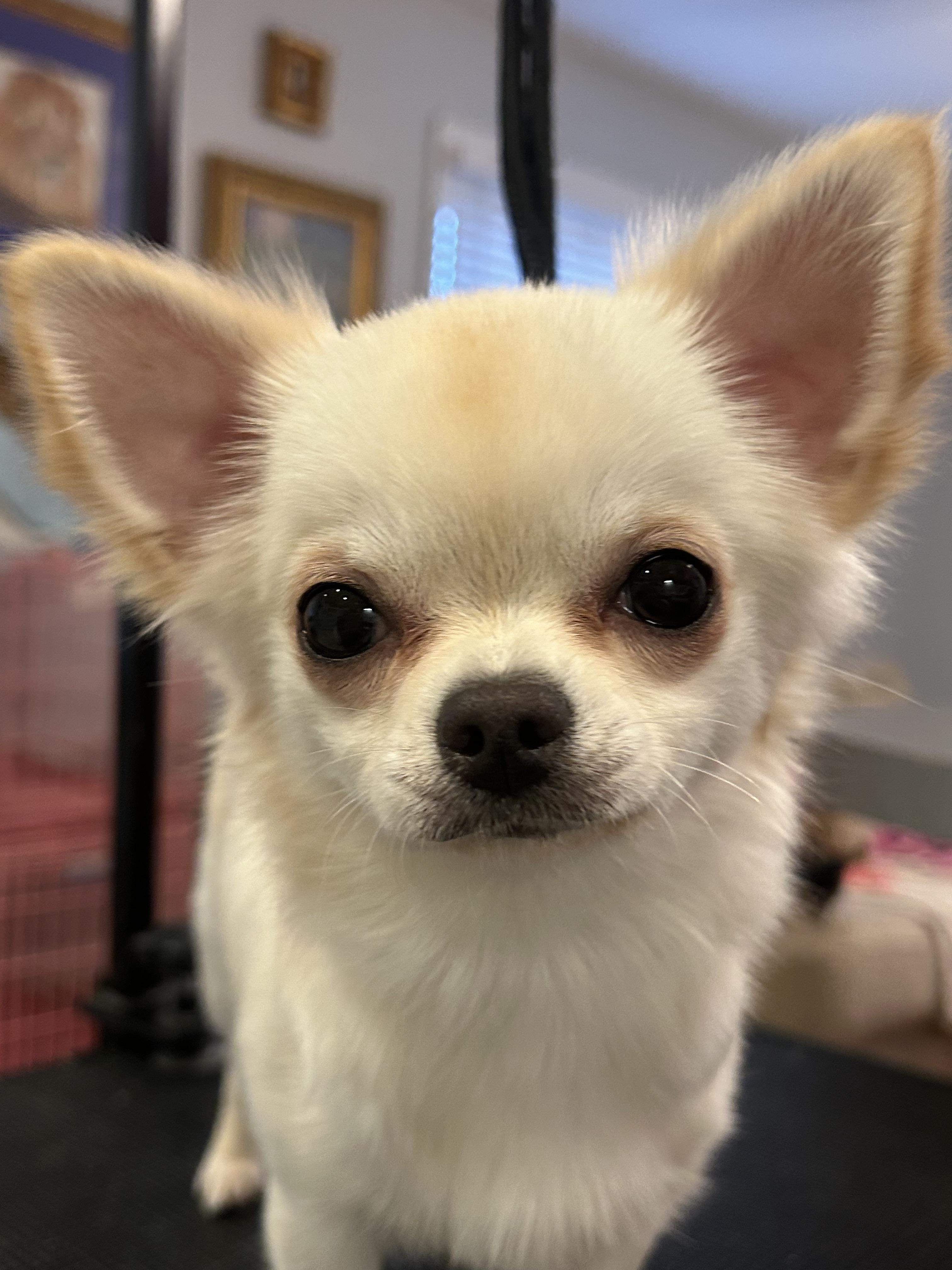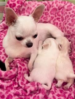 Valentina is a small, sweet smooth coat chihuahua with big brown melting eyes! She is wonderful companion to me and exceptional new mother!