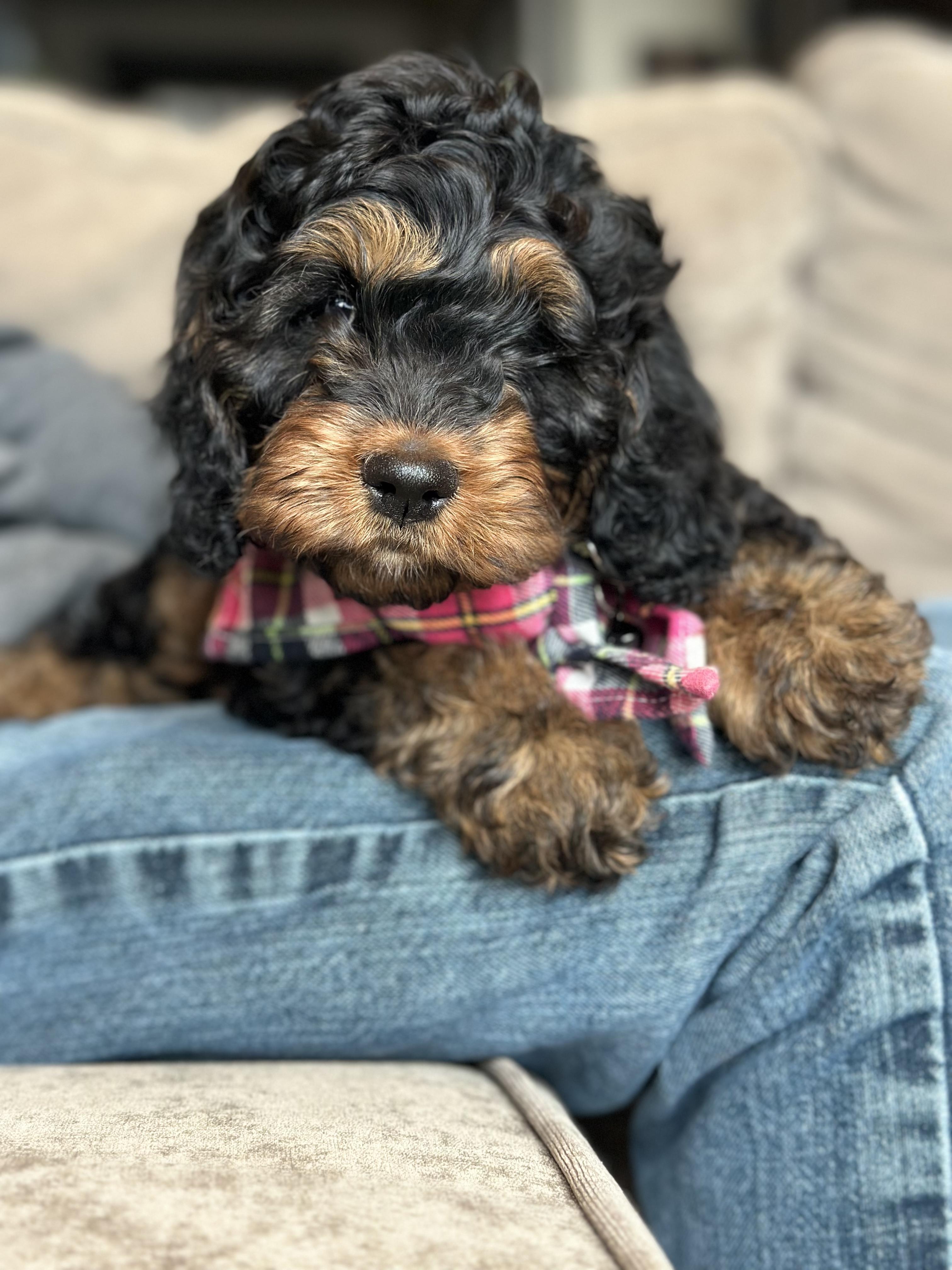 Slone is a female Cockapoo. Carefully selected as a great representative of her breed, Tiffanie decided to make her part of their program. Tiffanie has passed Good Dog’s screening process, which involved a review of their breeding practices, environment, and the mental and physical health of their dogs.