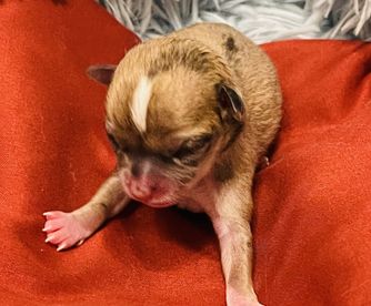 Mona is a female Chihuahua. Carefully selected as a great representative of her breed, Pam decided to make her part of their program. Pam has passed Good Dog’s screening process, which involved a review of their breeding practices, environment, and the mental and physical health of their dogs.