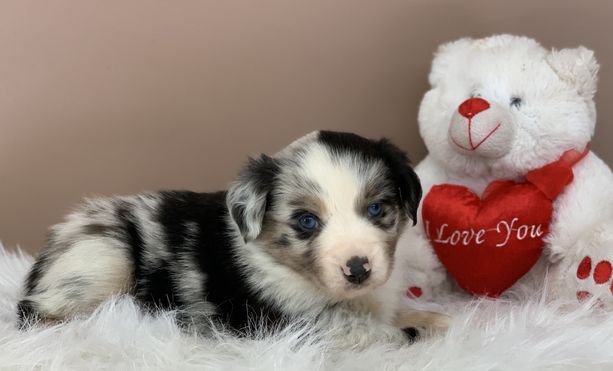 Our puppies include blue merle, black tri, red tri, and red merle. Colors will vary depending on the parent dogs.